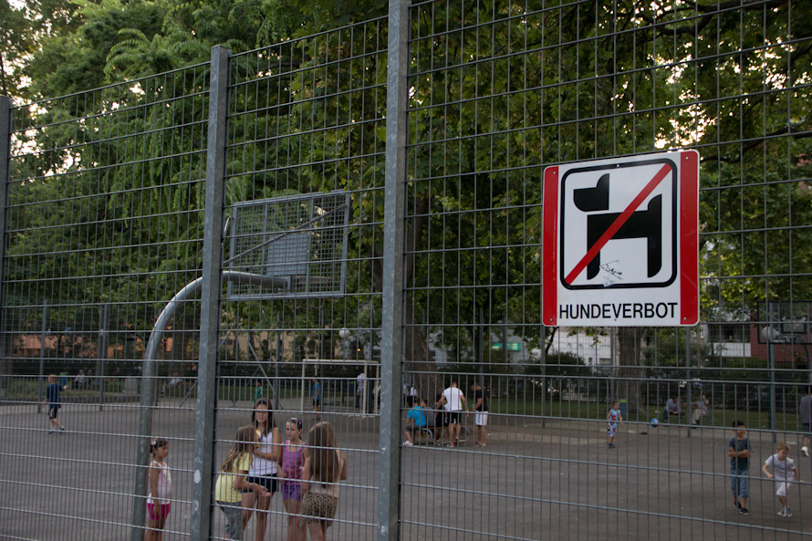 Auf dem Spielplatz waren so viele Kinder, kein einziges sprach Deutsch – Serbisch, Kroatisch, Mazedonisch, Albanisch, Türkisch… Das Schönste war, dass sie sich irgendwie untereinander verständigen konnten. Nur als die Taktik beim Fußball genauer diskutiert werden musste, habe ich hier und da ein deutsches Wort vernommen. Sonst – Balkan rules. Das einzig Deutsche war das Schild „Hundeverbot“ auf dem Zaun des Fußballplatzes. Für meinen Sohn ist das ein kostenloser Sprachunterricht. Toll, ich wollte schon immer, dass er auch Kroatisch/Serbisch sprechen lernt. Nun brauche ich mir keine Sorgen machen – er muss nur mehr Zeit bei meinen Eltern verbringen, im 20. Bezirk in Wien.